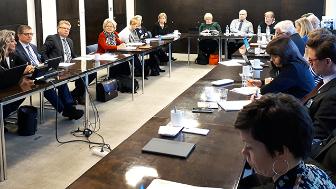 Ministerit Jari Lindström, Annikka Saarikko ja Pirkko Mattila kokosivat eduskuntaryhmien, työmarkkinajärjestöjen ja muiden keskeisten sidosryhmien edustajat etsimään ratkaisuja seksuaaliseen häirintään työpaikoilla.