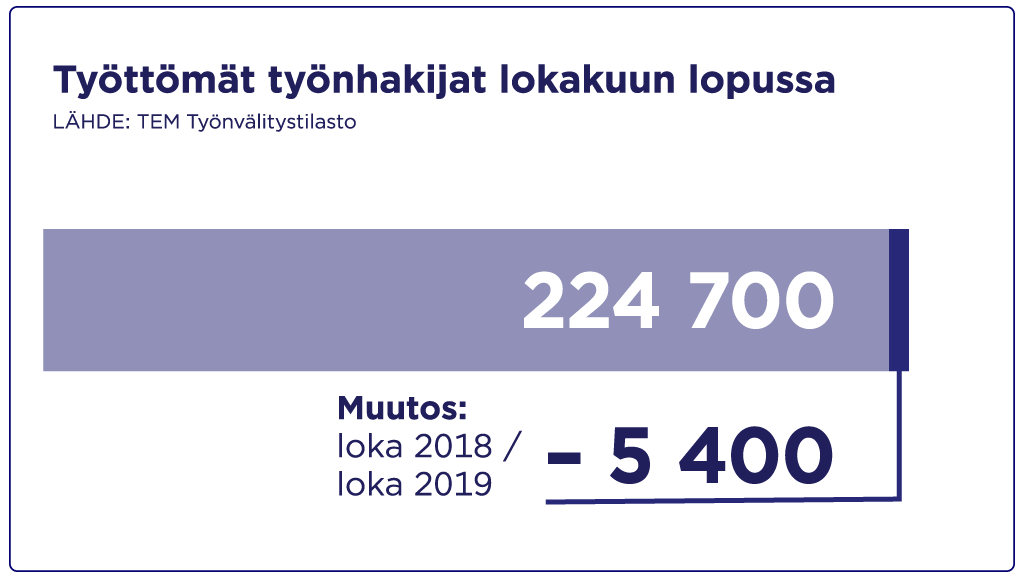 Työttömien työnhakijoiden määrä väheni lokakuussa