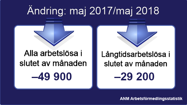 Långtidsarbetslösheten fortsatte att minska i maj