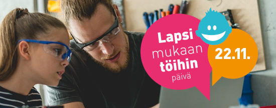 Lapsi mukaan töihin päivä tulee taas 22.11. Lapsiasiavaltuutetun, Lastensuojelun Keskusliiton sekä työ- ja elinkeinoministeriön yhteistyössä järjestämää valtakunnallista päivää vietetään lapsen oikeuksien viikolla. Lue tästä, miten sinun työpaikkasi voi osallistua ja järjestää päivän ohjelmaa.