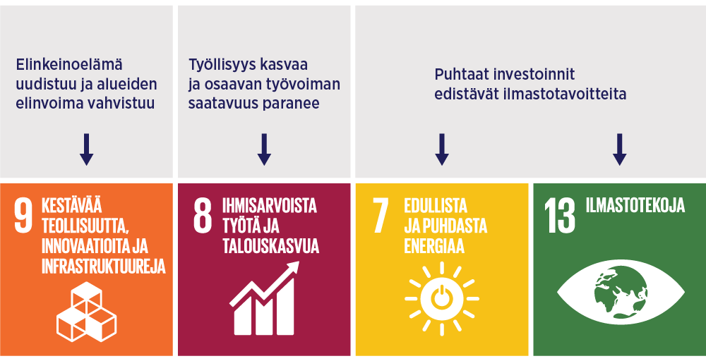 Strategiset tavoitteet edistävät tiiviisti myös YK:n Agenda 2030 –toimintaohjelman mukaisia kestävän kehityksen tavoitteita. TEM edistää toimillaan erityisesti seuraavia kestävän kehityksen tavoitteita, jotka toimivat myös vastuullisuusraporttien pohjana.